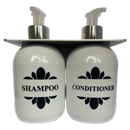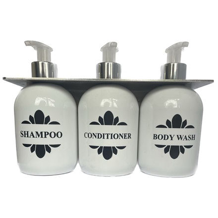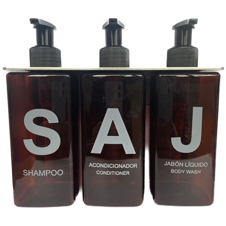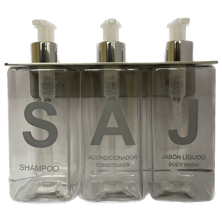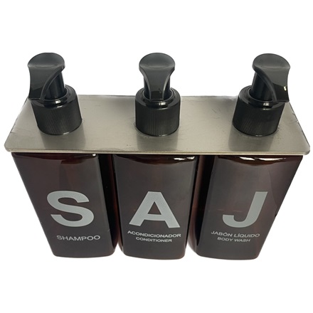 Dispenser de pared para ducha, simples, dobles o triples. En 300cc o 250cc. Con soporte de acero inoxidable. Colores blancos, ambar o transparentes.